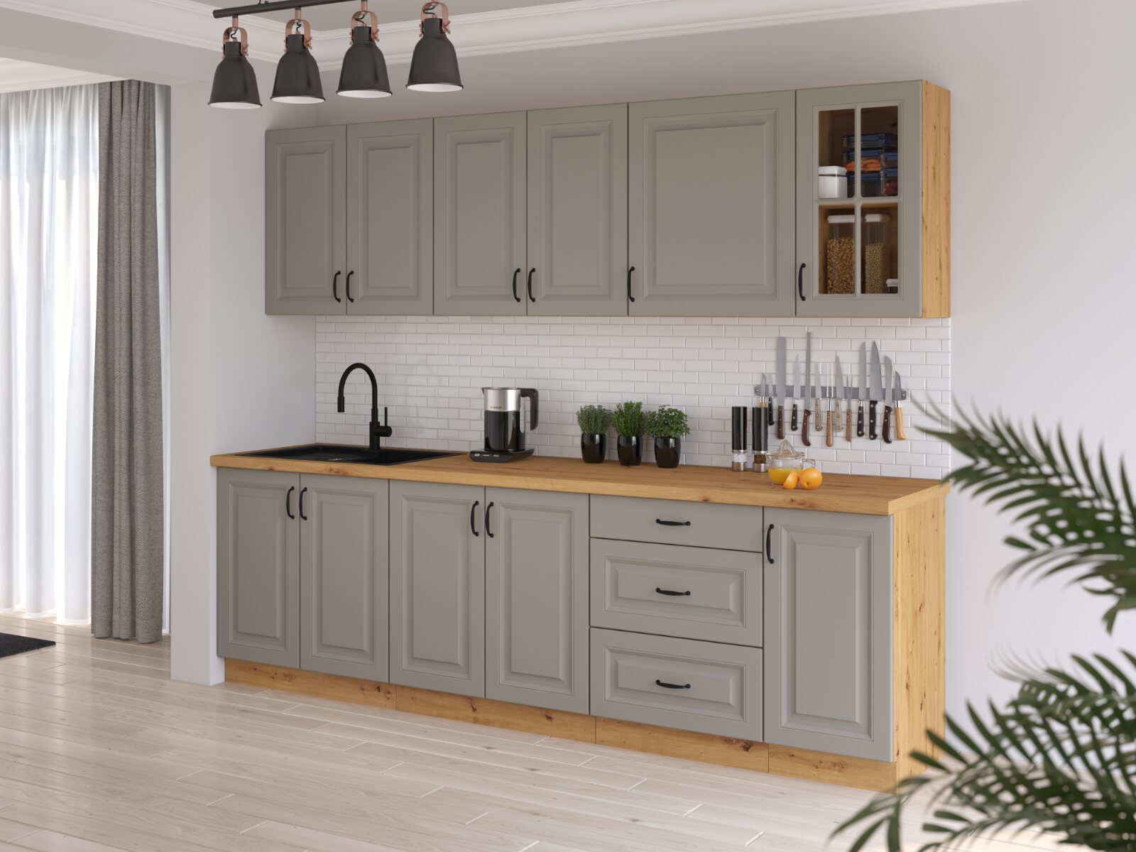 Szukasz gotowego rozwiązania, które oszczędzi Twój czas i pieniądze? Nasze gotowe zestawy kuchenne to starannie zaplanowane kompozycje szafek, które sprawdzą się w każdym wnętrzu. Wybraliśmy najpopularniejsze szerokości i najchętniej kupowane style, aby ułatwić Ci wybór bez konieczności samodzielnego projektowania. Postaw na sprawdzoną funkcjonalność, nowoczesny wygląd i atrakcyjną cenę. Twoja nowa kuchnia może być gotowa do montażu szybciej, niż myślisz!