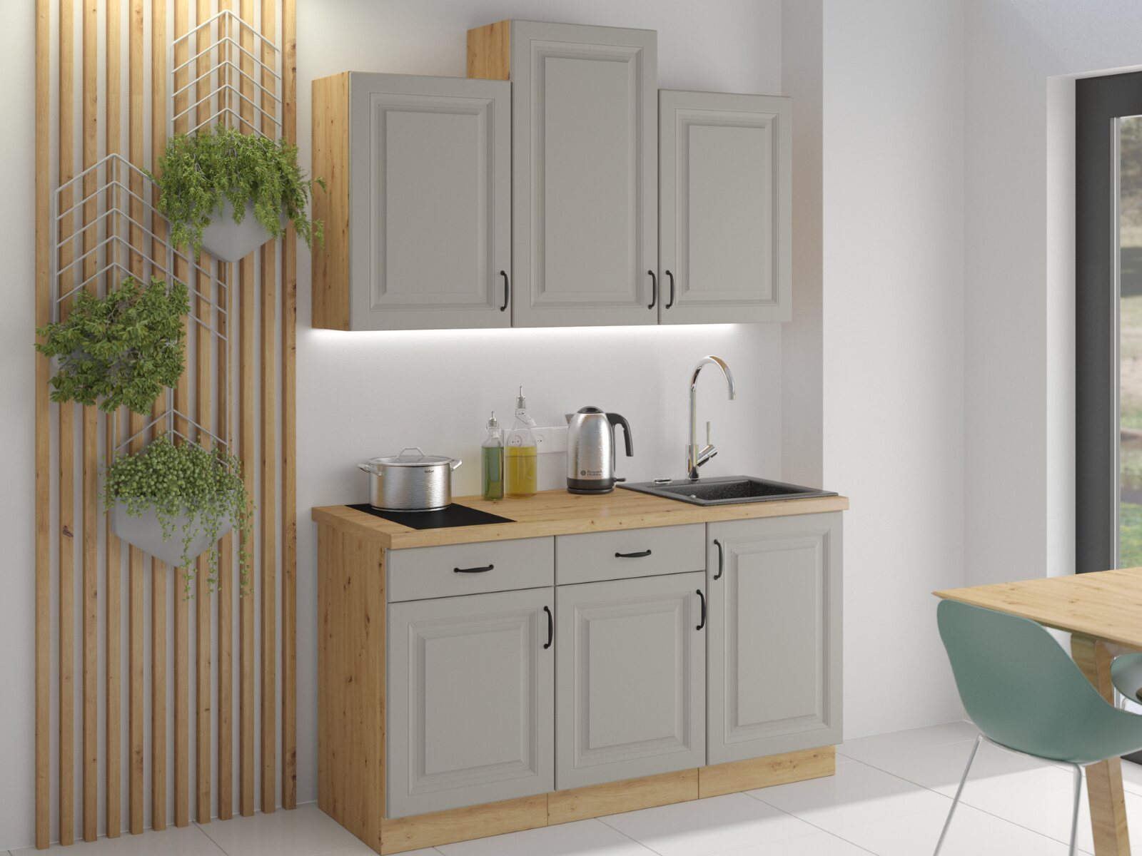 Szukasz gotowego rozwiązania, które oszczędzi Twój czas i pieniądze? Nasze gotowe zestawy kuchenne to starannie zaplanowane kompozycje szafek, które sprawdzą się w każdym wnętrzu. Wybraliśmy najpopularniejsze szerokości i najchętniej kupowane style, aby ułatwić Ci wybór bez konieczności samodzielnego projektowania. Postaw na sprawdzoną funkcjonalność, nowoczesny wygląd i atrakcyjną cenę. Twoja nowa kuchnia może być gotowa do montażu szybciej, niż myślisz!