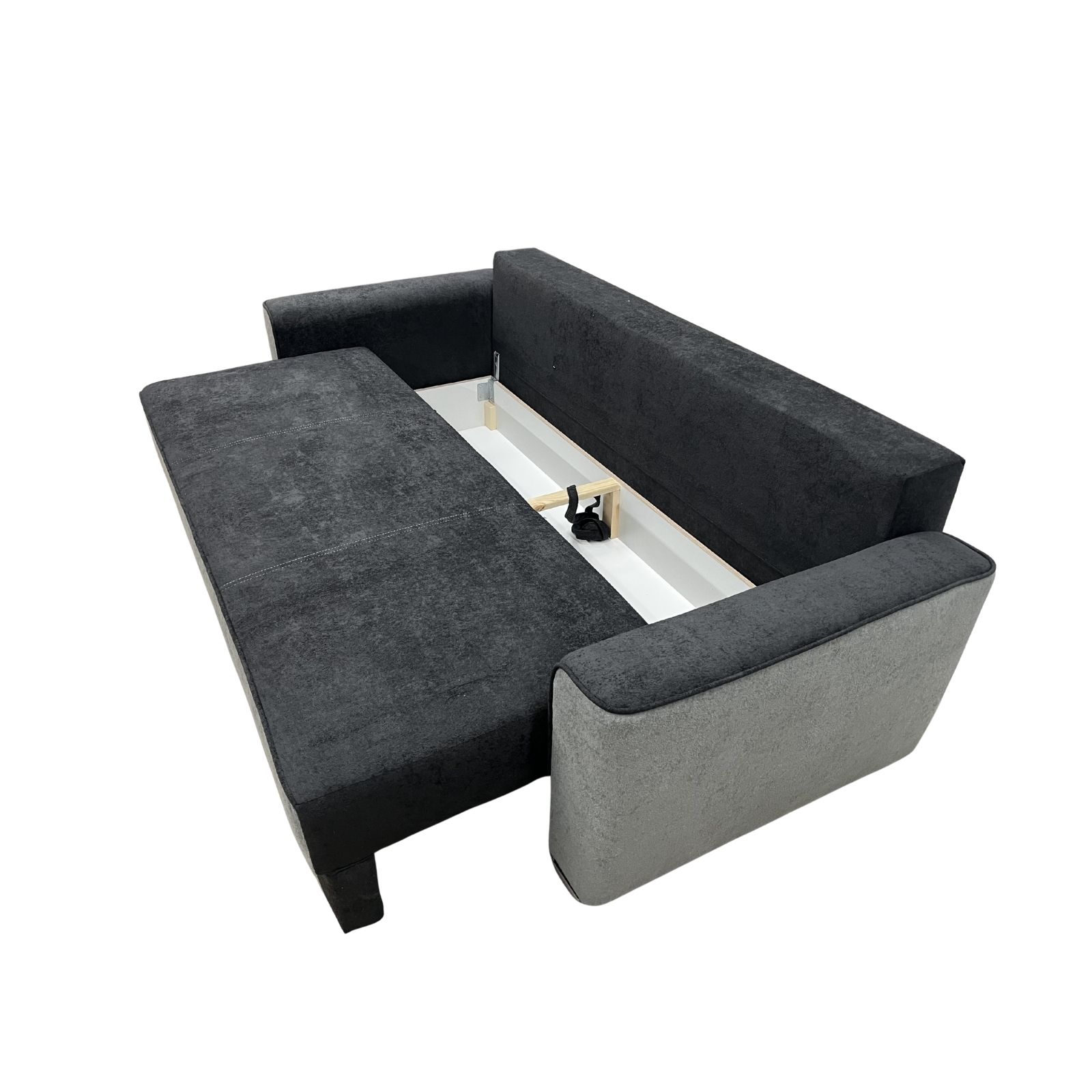 Kanapa Soft została wyposażona w intuicyjny system rozkładania, który pozwala na błyskawiczną przemianę mebla. Pod całą powierzchnią siedziska znajduje się bardzo pojemny schowek na pościel. Solidny pojemnik bez trudu pomieści kołdry, poduszki oraz zapasowe koce, co pozwala utrzymać nienaganny ład w salonie. Całość osadzona jest na eleganckich, dyskretnych nóżkach, które dopełniają nowoczesny wizerunek mebla.