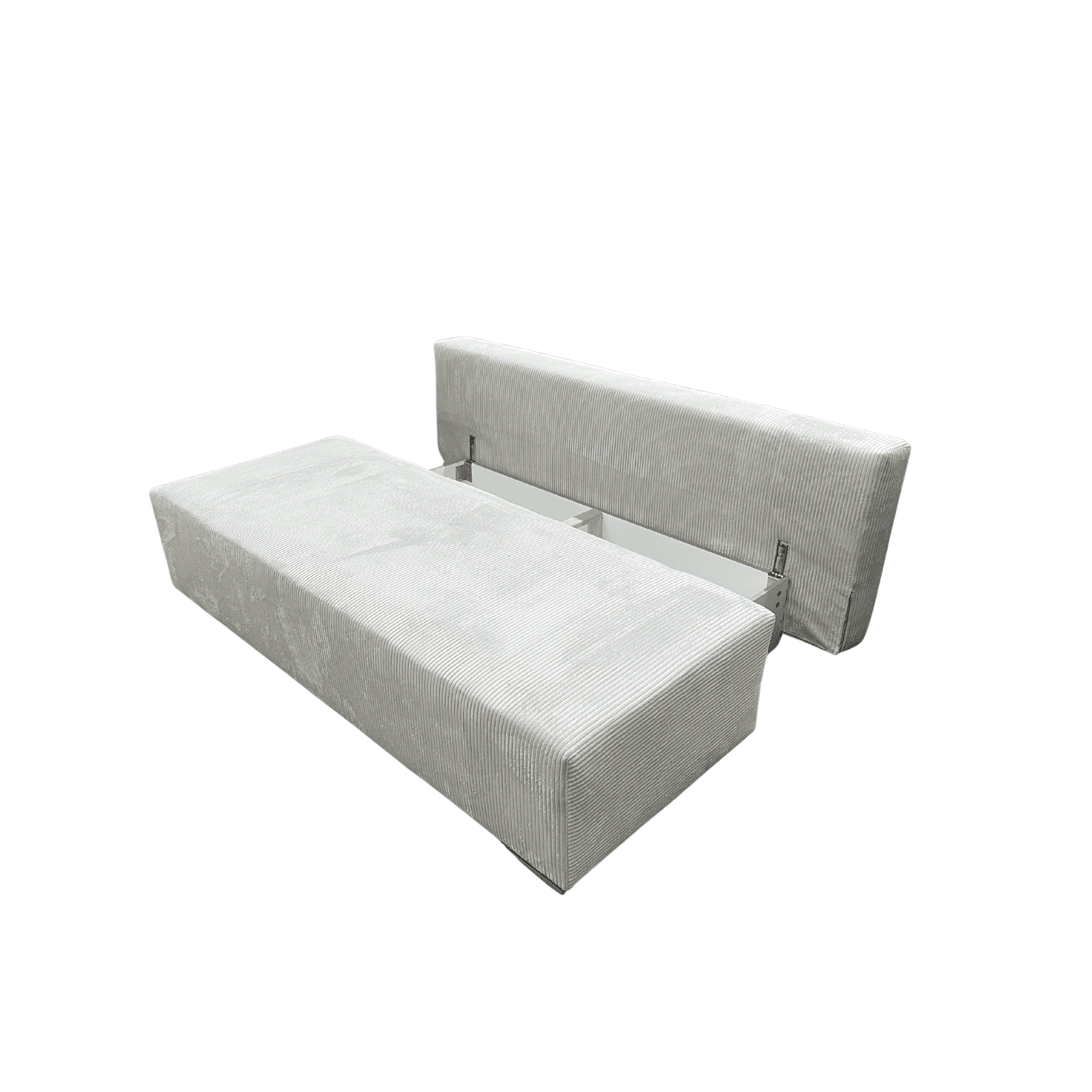 Dzięki pojemnemu schowkowi na pościel, utrzymanie porządku jest banalnie proste. Możesz tam schować nie tylko kołdry, ale i sezonowe ubrania czy koce, które chcesz mieć zawsze pod ręką. Całość konstrukcji spoczywa na eleganckich, chromowanych nóżkach, które dodają meblowi nowoczesnego blasku i ułatwiają sprzątanie pod nim.