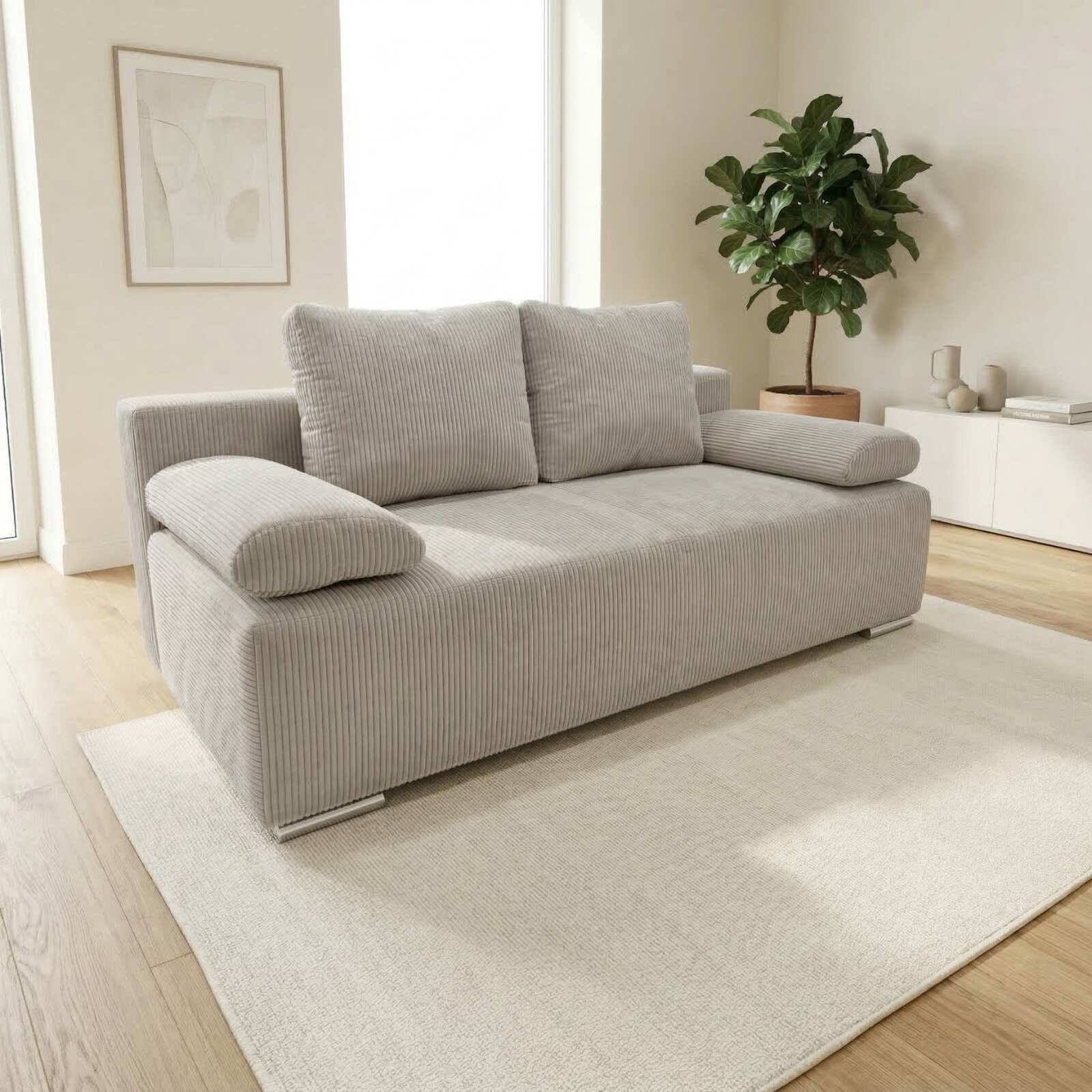 Dlaczego wersja sztruksowa jest tak wyjątkowa? Tkanina corduroy to materiał z charakterem. Jej wypukłe prążki nie tylko nadają kanapie intrygujący, trójwymiarowy wygląd, ale przede wszystkim są niezwykle miękkie. W wersji beżowej lub kremowej (widocznej na zdjęciu) Velo sztruks wprowadza do wnętrza spokój i harmonię.