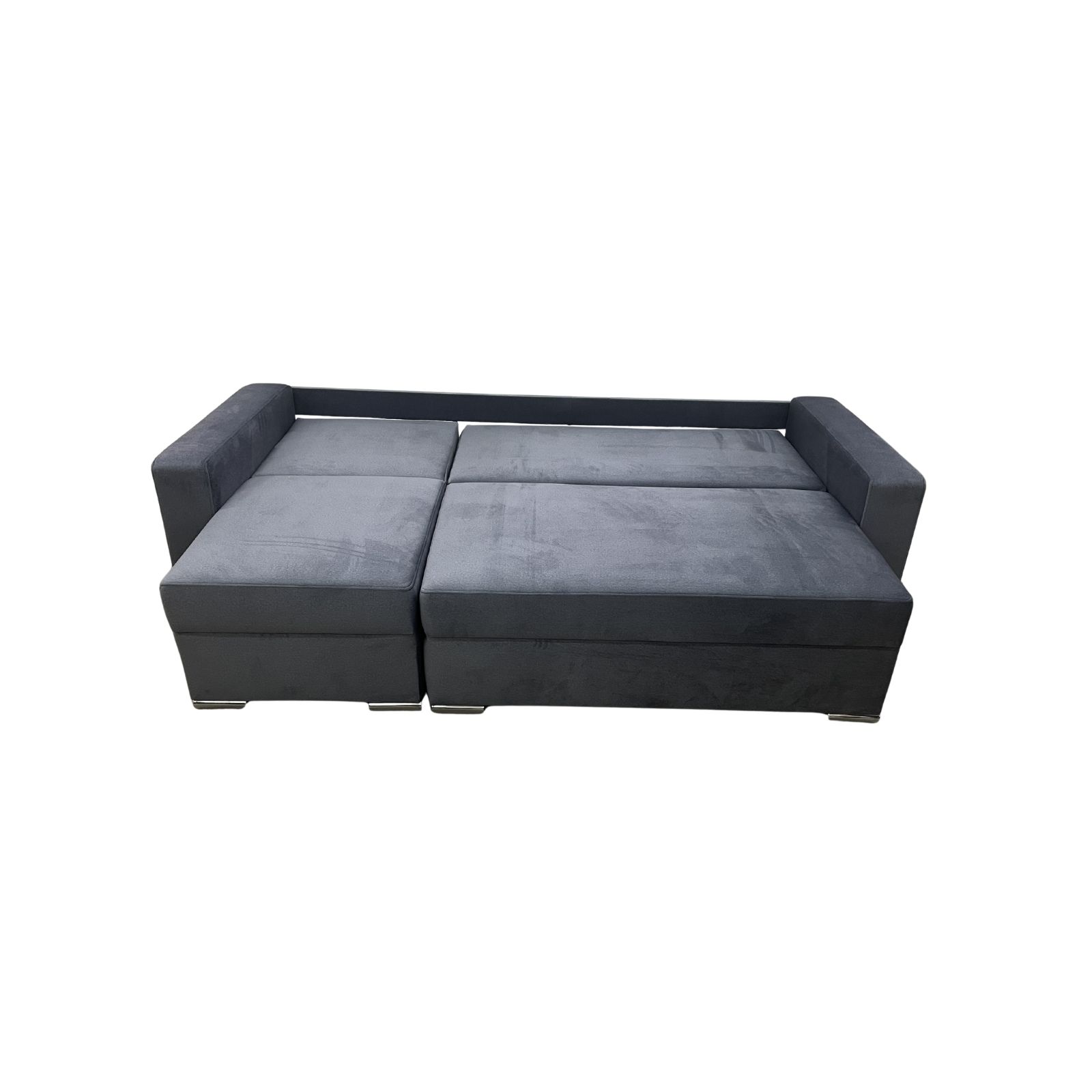 Mimo że Kuba jest meblem niezwykle sprytnym konstrukcyjnie, nie zapomniano o praktyczności. Pod oboma segmentami siedziska ukryte są dwa niezależne i bardzo pojemne pojemniki na pościel. To rzadkość w meblach o tak kompaktowej formie. Dzięki temu zyskujesz ogromną przestrzeń do przechowywania nie tylko pościeli, ale także sezonowych ubrań, koców czy zabawek. Solidna konstrukcja skrzyń sprawia, że dostęp do nich jest szybki i bezproblemowy.