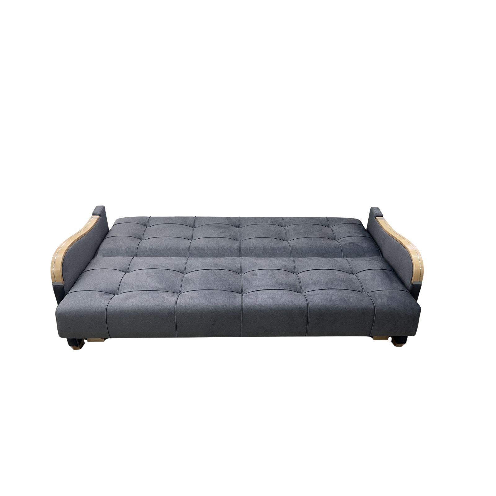 Pod siedziskiem ukryty jest pojemny schowek na pościel. Solidny pojemnik bez trudu pomieści komplet pościeli, poduszki oraz koce, pomagając Ci utrzymać w salonie nienaganny ład i porządek. Royal to mebel, który dba o Twój komfort przez całą dobę – w dzień służąc jako stylowa sofa, a w nocy jako niezawodne miejsce regeneracji.