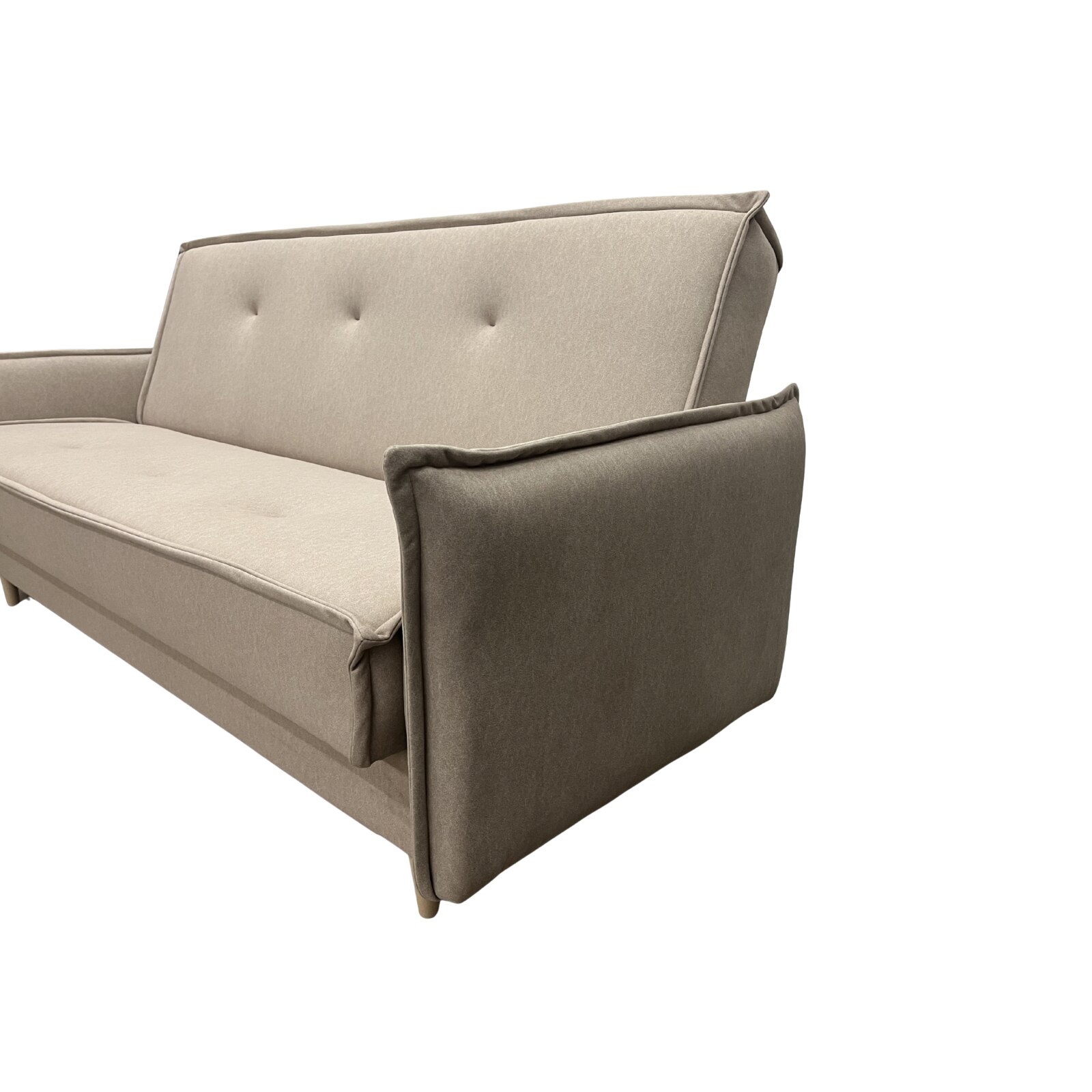 Pierwszą rzeczą, która sprawia, że Malmo wyróżnia się na tle klasycznych, ciężkich kanap, jest jej niesamowita lekkość wizualna. Dzięki zastosowaniu wysokich, skośnych nóżek wykonanych z jasnego, naturalnego drewna, wersalka wydaje się niemal lewitować nad podłogą. To zabieg nie tylko estetyczny, ale i niezwykle praktyczny w nowoczesnym budownictwie. Wolna przestrzeń pod meblem sprawia, że nawet niewielki salon wydaje się większy, jaśniejszy i bardziej przestronny. Dodatkowo, wysokie nóżki to ukłon w stronę posiadaczy robotów sprzątających – bez trudu zadbasz o czystość pod meblem, bez konieczności jego przesuwania.
