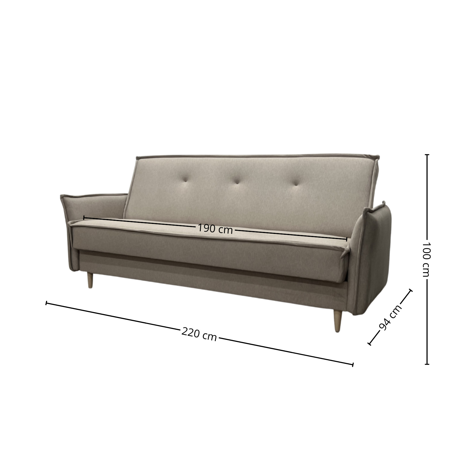 Powierzchnia spania o wymiarach 190 x 120 cm to idealna przestrzeń dla jednej osoby do codziennego, regenerującego snu, lub doskonałe wyjście awaryjne, gdy odwiedzą Cię bliscy. Pod siedziskiem ukryty jest pojemny schowek na pościel. Solidnie wykonany, pomieści kołdry, poduszki oraz koce, pomagając Ci utrzymać w salonie idealny ład i porządek, który jest kluczowy w stylu skandynawskim.